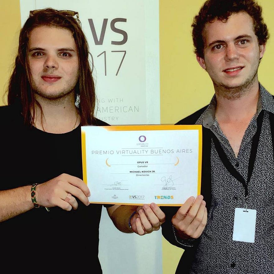 El director Michael Kovich Jr. y el productor Nicolás Merens recibieron el Premio Virtuality Buenos Aires, el pasado 30 de noviembre, en el auditorio de la Universidad Católica, en Puerto Madero de Buenos Aires.